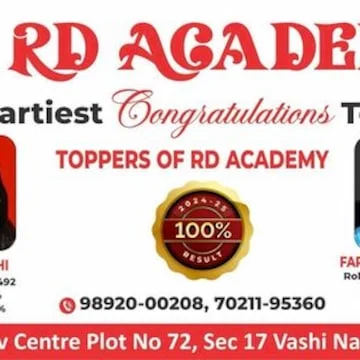 Nestled in the bustling Sector No 17 of Vashi, Navi Mumbai, Rd Academy has made a name for itself as a pivotal learning center for students aiming to excel academically. Located at Office No 427, 4th Floor, Shiv Center, Next to Arenja Corner, this educational hub is easily accessible via the Vashi railway station, which is just a short auto-rickshaw ride away. The area is characterized by a mix of residential and commercial buildings, creating a vibrant atmosphere where students can find cafes for study breaks and libraries for additional resources. With its proximity to local schools and educational institutions, Rd Academy attracts students from various neighborhoods, fostering a diverse learning environment.