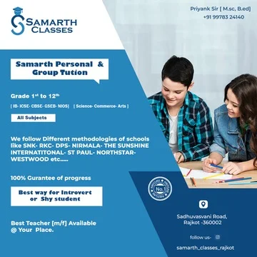 Samarth Personal & Group Classes uniquely addresses the needs of students in Rajkot by offering personalized coaching tailored to individual learning paces, which is often lacking in other local centers. With a remarkable 4.9-star rating from 432 reviews, parents can trust the effectiveness of their methods. The combination of academic rigor, expert faculty, and a supportive environment makes this center ideal for students striving for excellence in school and competitive exams. By not choosing Samarth, parents may miss out on their child's potential to excel academically—and the guidance that can make a crucial difference in their educational journey.