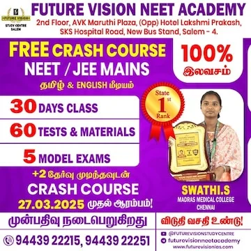 Situated at 2nd Floor, AVK Maruthi Plaza, Opposite Lakshmi Prakash Hotel, Near New Bus Stand, SKS Hospital Road, Meyyanur, Salem-636004, Tamil Nadu, Future Vision Neet Academy stands out as a notable educational hub in the region. The area is bustling with activity, surrounded by essential amenities including eateries, shopping centers, and bus services, making it easily accessible for students commuting from various parts of Salem. Parents often drop off their children on the way to work, while students can also utilize public transport from nearby bus stops, ensuring a steady flow of eager learners into this well-established institute.