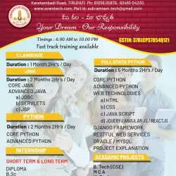 Subramanyvam Technologies, located at Plot No 1 First Floor, Opposite Bommala Quaters, Chennayogunta, Mangalam, Tirupati-517507, Andhra Pradesh, is an educational hub that caters to the growing need for specialized coaching in technical fields. Nestled in a bustling neighborhood, this center is easily accessible by students who travel from nearby areas, thanks to the well-connected public transport system. The vicinity boasts several local landmarks, including the Tirupati Railway Station and the renowned Tirupati Balaji Temple, making it an easy stop for students and parents alike. This strategic location not only offers convenience but also a sense of community among learners and educators, fostering an environment where students can thrive.